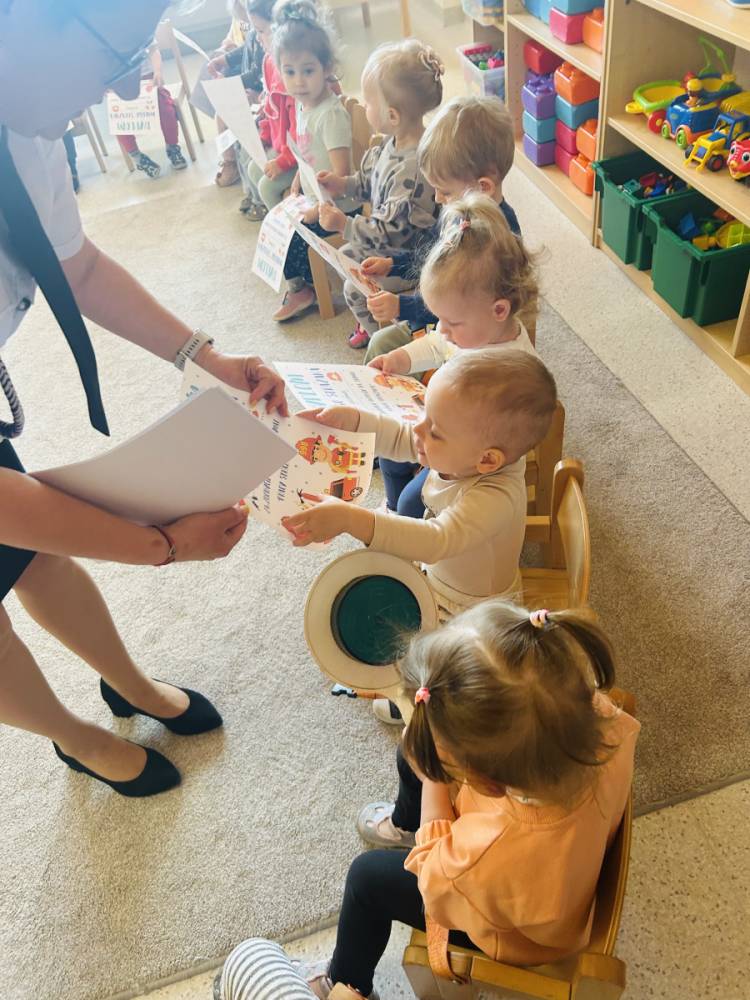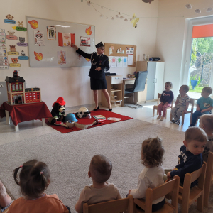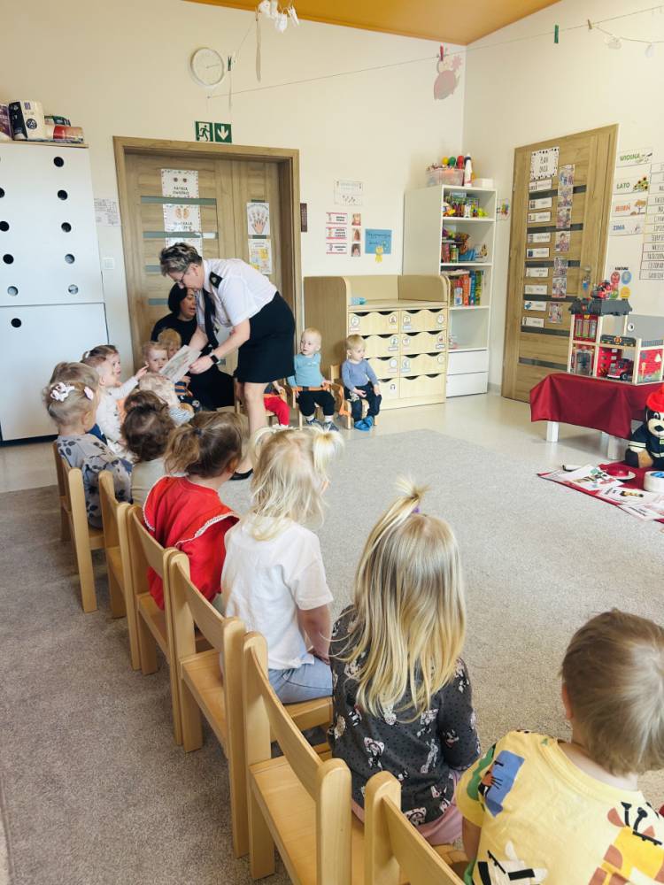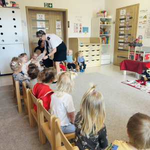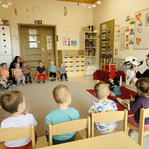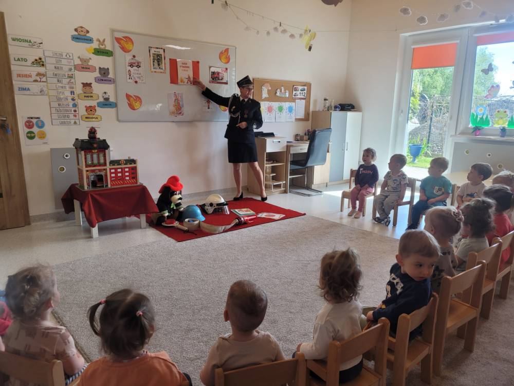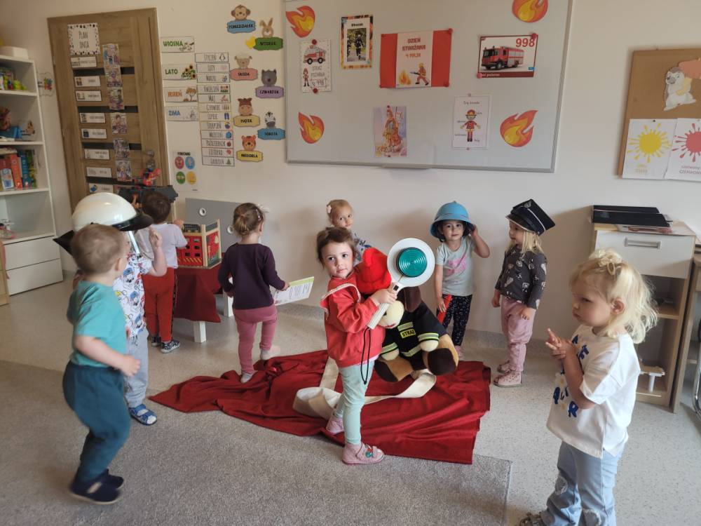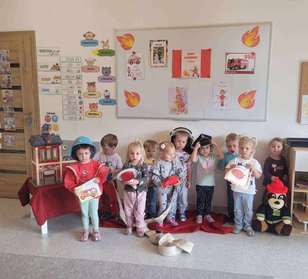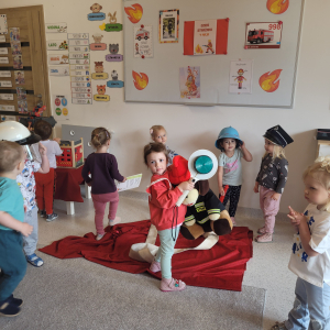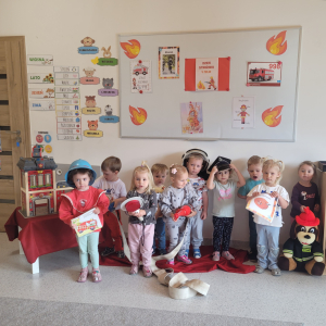 Dziś świętowaliśmy Dzień Strażaka. Ciocia Ania należąca do Ochotniczej Straży Pożarnej w Złotnikach Kujawskich opowiedziała dzieciom o pracy strażaka. Dzieci miały okazję zobaczyć wyposażenie oraz elementy ubioru strażackiego.